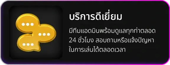 ตอบ : มีทีมงานคอยให้บริการตลอด 24 ชั่วโมงผ่าน Line Official, Live Chat บนเว็บไซต์ และเบอร์โทรศัพท์